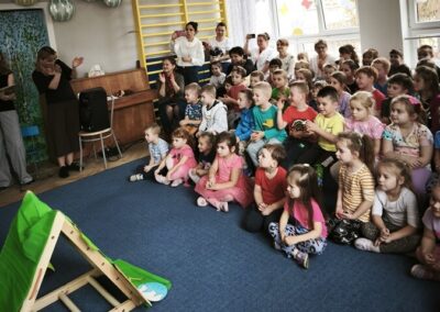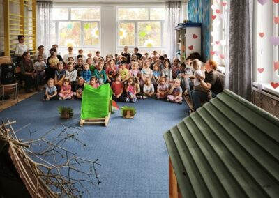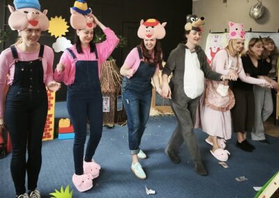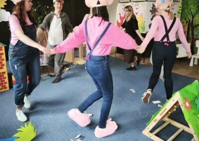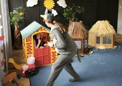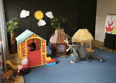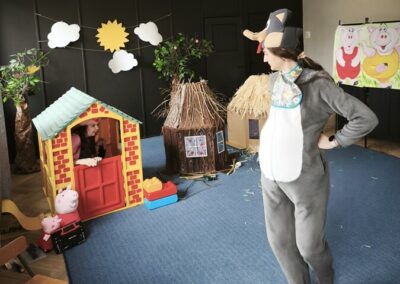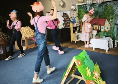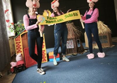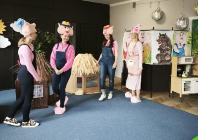 Z tej okazji nasza kadra pedagogiczna przygotowała dla dzieci oraz całego przedszkola niespodziankę przedstawienie własnej interpretacji bajki pt. „Trzy Świnki”